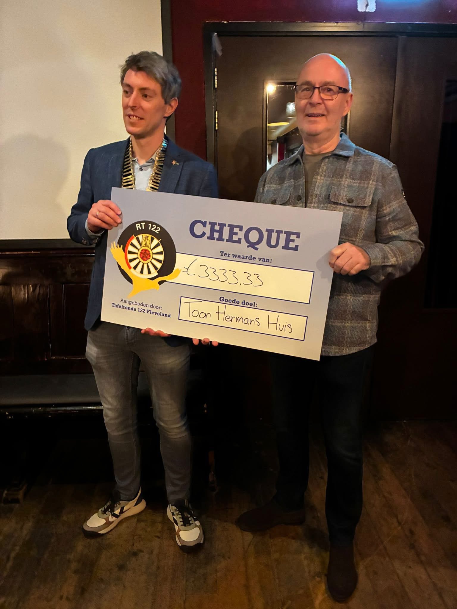 Wij zijn erg blij dat wij een cheque overhandigd kregen van de voorzitter van de Ronde Tafel 112 Flevoland.